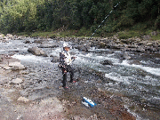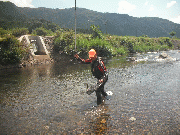 花背から上流ではオオハンゴウソウの花が多数咲いています。ぱっと見は綺麗な黄色の花ですが、猛烈な勢いで繁茂する特定外来植物です。花だけをちぎり落とす方が繁殖防止効果が高いとのことですので、入川時やお帰りの際に少しでもご協力いただけますと幸いです。