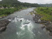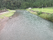 [内容] 午前8時の写真、山陵橋・亀の甲橋・中江下流。午前8時水位、約25センチ高いです。笹濁り。