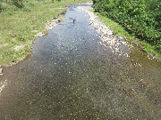 午後2時頃夕立あり黒田で20センチアップ。漁協前一時平水より10センチアップが午後5時平水に。明日は、残りアユが下がって所々群れになることを期待します。
