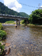 [内容] 今日も一日晴れのお天気で暑くなりました。16時頃の気温は32度。水位は漁協下で平水時の約10cm減、水温は約26度です。濁りも出ておりません。