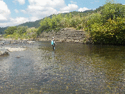 水位は漁協下で平水時の約15cm減。水温は約29度で濁りはありません。