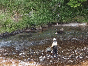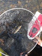 お昼頃、六ヶ付近では1匹から4匹。亀の甲橋下流では5匹,10匹。飛び石付近では10匹の方あり。