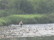 昨夜通り雨が降りました。一時10cmほど水位は上がりましたが、漁協下で平水時の約10cm減、水温約26度。
