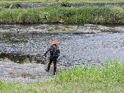 [内容] 午後4時現在の天候は薄曇り、気温は30度。漁協下の水位は平水時の約10cm減で濁りはありません。水温は約27度。