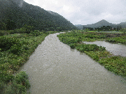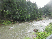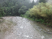 花脊上流部では笹濁り。今夜強い雨さえ降らなければ場所によっては竿を出せそうな感があります。