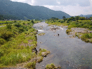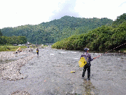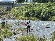 午前中、花脊から中の橋では多い方で5匹程度。山陵橋上流では23匹ほか、20匹の方も。川遊び客が入って上流へ鮎が差してきたようです。