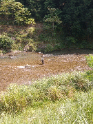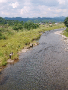河川水位は漁協下で平水時の約10cm減。水温は約27度。濁りはありません。