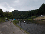 [内容] 午後から曇り空となり、暑さはひと段落しています。午後3時の気温は32度。河川水位は漁協下で平水時の約10cm減。水温は約25度で濁りはありません。