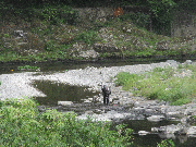 本日は中の橋上下流では素掛け、六ヶや中江橋下流の電線下付近では友釣りと網、周山ではゴリ獲りの方が入られておりました。