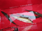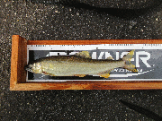 組合役員さん、晨渡橋下流で鮎ルアー(延竿)釣果4匹(22cmから24cm)。