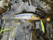 昨日あまご狙いで入った花脊の本流部では雨で水温は下がったものの、それでも若干高めで反応鈍め。小さいものは掛かりますが、最大で20cmほどの個体が追って出てきたのみでした。