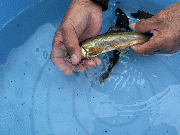 24日役員さん釣果です。山国で鮎ルアーにて3匹(雄1,雌2)。釣行時間は10時から12時、最大24cm。雄雌ともに婚姻色になってきているようです。