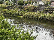 週末は八千代橋,すし米さん下で網をされているグループがおられました。