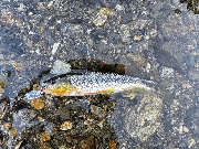午後、写真を撮影した中の橋下流では力尽きたオオサンショウウオの姿がありました。