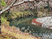 冬の時期、流れの緩い淵などに溜まったハエ等の雑魚がカワウの襲撃を受けます。このため、秋から鮎の解禁まで河川各所にカワウ除けのテグスを張り巡らせております。