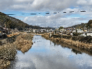 冬の時期、流れの緩い淵などに溜まったハエ等の雑魚がカワウの襲撃を受けます。このため、秋から鮎の解禁まで河川各所にカワウ除けのテグスを張り巡らせております。