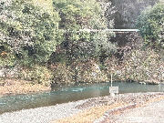 冬の時期、流れの緩い淵などに溜まったハエ等の雑魚がカワウの襲撃を受けます。このため、秋から鮎の解禁まで河川各所にカワウ除けのテグスを張り巡らせております。