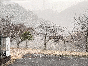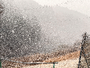 [内容] 午後4時半現在、天候は雪。周山でも山並みは真っ白で美しい景色が広がっています。道路への積雪はなし。明日の朝は凍結注意、といったところでしょうか。