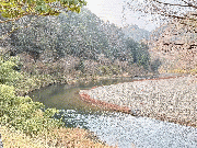 冬の時期、流れの緩い淵などに溜まったハエ等の雑魚がカワウの襲撃を受けます。このため、秋から鮎の解禁まで河川各所にカワウ除けのテグスを張り巡らせております。