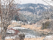 冬の時期、流れの緩い淵などに溜まったハエ等の雑魚がカワウの襲撃を受けます。このため、秋から鮎の解禁まで河川各所にカワウ除けのテグスを張り巡らせております。