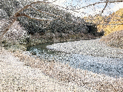 冬の時期、流れの緩い淵などに溜まったハエ等の雑魚がカワウの襲撃を受けます。このため、秋から鮎の解禁まで河川各所にカワウ除けのテグスを張り巡らせております。