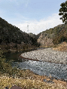 冬の時期、流れの緩い淵などに溜まったハエ等の雑魚がカワウの襲撃を受けます。このため、秋から鮎の解禁まで河川各所にカワウ除けのテグスを張り巡らせております。