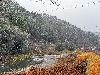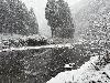 午後4時現在の天候は曇り。気温は5度。周山では平地部分の積雪こそなかったものの、一日を通じて雪が降ったり止んだりしています。 黒田より上流域では昼頃から雪が強く降り、積雪量が増えたようです。午後、花脊峠の百井別れ付近では道路への倒木があったとのこと。 漁協下の水位は平水時の約10cm高。朝濁っていた弓削川ですが、現在濁りはほとんどなく、組合前の濁りもありません。