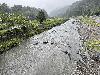 午後4時現在の天候は小雨、気温は22度。 午後3時頃から一時的に強い雨が降りました。その影響か、谷や支流から濁り水が出てきています。水位も少し上がってきているようで、漁協下では平水時の約10cm高。 山陵橋より下流で濁りが強まってきています。周山はまだ笹濁りですが、次第に濁ってくると思われます。 明日にかけても降水確率が高い状況が続くため、水況の変化が気がかりです。