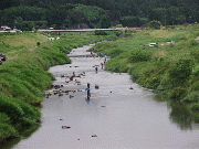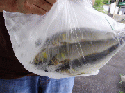 解禁日に釣れた鮎と一原夫妻が釣られた中江ピョンピョン広場。