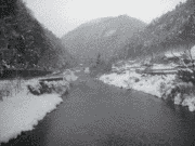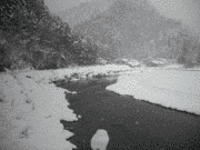 細野方面の雪は大方溶けていますが、谷奥へ行くと雪が残っています。集中放流区広河原・花背は、午後からも雪が降っています。写真は、午後からの写真。最初の3枚は、細野川芦見谷付近。上流は、灰屋口から上流へ順に。水位は、20から30センチ高め。上黒田 1.90m 周山 0.67m