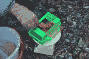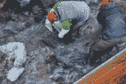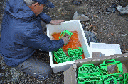 ベテランの指導員さん中心に2万粒を2つの谷へ放流。