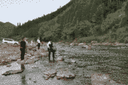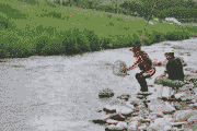 京北橋下流、良く釣れたので20分間、3名で26匹。サイズ13.5から17センチ。