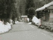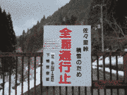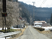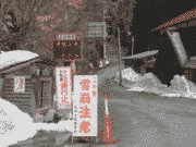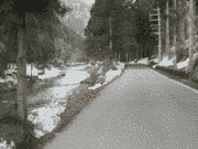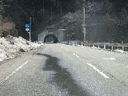 道渕の雪がところにより溶け路面に流れてきています。朝は凍結するおそれがあるので注意してください。