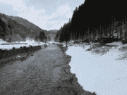 川原の積雪は、多いところは腰まで、少ないところは30センチ、溶けて消えているところも有り。