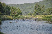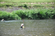 [内容] 夕立が三日続き心配していましたが、昨日から、周山大橋から上流部、所々で良いサイズを10から40匹釣られ、条件としては、高水ですがまずまずのコンディション。