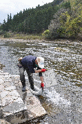 [内容] 4月25日から放流開始、4月の水温は低く、本日で朝の水温10度。
