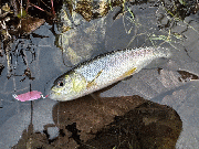 土曜は日当たりのよいところで夕方にルアーでカワムツの反応あり。流れのヨレているところで追いはありますが、虫が減ってきているのか魚は痩せてきています。大きいもので15cm程度でした。餌を取れる魚と取れない魚の差があるように思います。