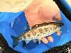 ★河川のようす★ 木曜日、花脊の支流に入られたお客様は餌釣りでつ抜けされたとのこと。変わったパーマークの魚が釣れたということで写真をいただきました。 本流筋の天然物や放流物とは異なるパーマークの魚で、事務局も初めて見ました。まだまだ知らないあまごがいるのだなと感じた次第です。