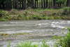 広河原・花背笹濁りで約40センチ高。濁りがとれるのは、広河原でも午後から。 解禁以降減水が無いのも珍しい年に。 写真午前7時、漁協前・中江・六ケ。