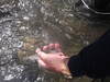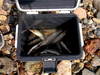 漁協上流、2時間で10匹、良型16から20センチ。(写真タライ)午後からエラへ入って10匹捕る予定。