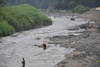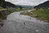 午前9時、高水ですが照りこみがあり釣り人も入川されています。