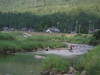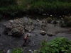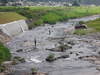 漁協前でほぼ平水、濁りほとんどとれています。 夕立で水位が上がった場合は注意してください。 11時頃から、ぼつぼつ入川されています。 水位が回復しましたが、少しドロをかぶっています。その岩を鮎が食みだし、黒光りにしてきました。 |