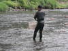 午後から釣り人さんも増えました。 高橋名人のお父さん、引き舟忘れて入川遅れましたが、中江で16匹の釣果。(午後3時過ぎ) 木之瀬さんが15匹、13から18センチ。中江と八千代橋での釣果。 潜没橋で良い型のアユを釣られていました。(タモのアユ写真) 花背消防所下流、開原氏27匹。