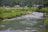 朝方上流部で雨が降った模様、山国地区薄く濁りが入っています。水位も数センチアップ。 漁協前では、約10センチ減水。