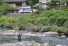 午後5時、今のところ夕立無し、減水しています。 水温も25度まで上がり、土用隠れ傾向、釣りにくい状況ですが、こきの付近、潜没橋、中江橋、亀の甲橋、六ケ、山陵橋が比較的多く入っておられましたが、日中より朝夕の方が良さそうです。 |