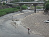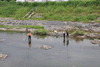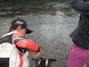 午後3時30分、道が湿る程度の夕立がありました。 教室のご協力有り難うございます。 36名の参加で89匹約2時間15分の釣果。 今年は、中江橋の上下流は、昼前にならないとアユが見えないので、亀の甲付近と潜没橋上流とに分かれました。