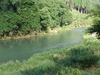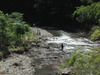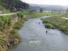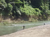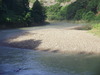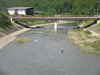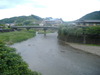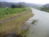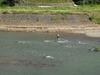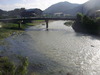 写真1、山陵橋上流、2枚目山陵橋下流、友釣りされている方が、雨で竿を収められています。(午前9時30分)薄く濁りが入ってきました。