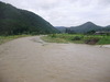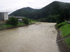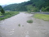 午前6時現在、昨夜からの雨で増水中、約50センチ高、赤濁り。水位は、上黒田 1.96m 周山 0.94m 中地 1.41m五本松 0.97m 。