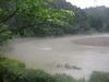 平水より約90センチ高、濁りはなかなかとれません。本流の濁りは、花背付近までとれましたが、水位も50センチ高く、垢も飛んでいます。細野川明日にならないと分からない状況。芦見口から上流は、濁りはほとんどとれているようです。水位は、上黒田 2.03m 周山 0.90m 中地 1.28m 五本松 0.51m