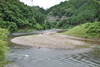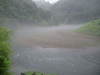 午前7時30分、約30から40センチ高、濁り無し。 高水での入川は、充分注意をしてください。 写真は、山陵橋上下流と橋の上からの透明度。水位、上黒田 1.96m 周山 0.80m 中地 1.24m 五本松 0.42m 雷が鳴ったときはすぐに避難。